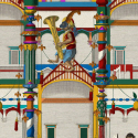 The El Circo wallpaper features ornate columns, playful monkeys in masquerade, and a vibrant palette that creates a sense of theatrical splendour. Intricate details and rich textures evoke the vibrancy of a fantastical world, immersing interiors in a lively narrative. Available in striking dark and light colourways, this design transforms walls into captivating scenes, perfect for enhancing lounges, hallways, or eclectic living spaces with a touch of drama and imagination.