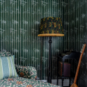 This wallpaper captures the mystique of ancient folklore through its intricate illustrations of mythical creatures set against a refined background. The design features subtle vertical stripes interspersed with delicate line drawings of unicorns and other fantastical beings, evoking a sense of timeless elegance and storytelling.