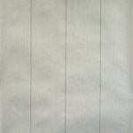 Marenco wallpaper features broad metallic vertical bands, with a fine pinstripe, separated by narrow stripes of colour.